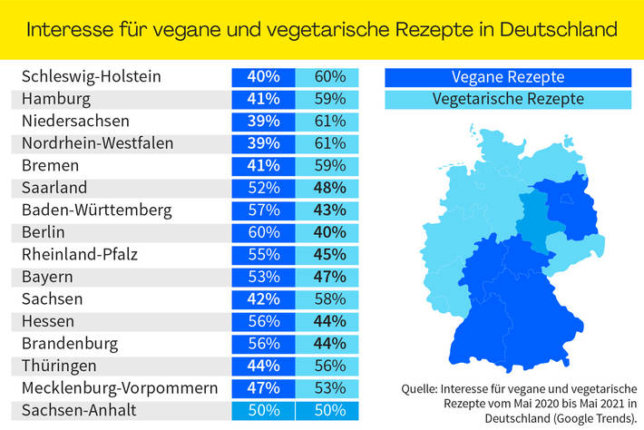 Vegetarisch ist in! Mehr als jedes dritte Gericht kommt ohne Fleischbeilage aus, doch auch die vegane Küche wird immer gefragter. Wir zeigen, wo das Interesse für vegane Gerichte schon besonders groß ist.