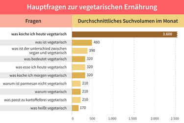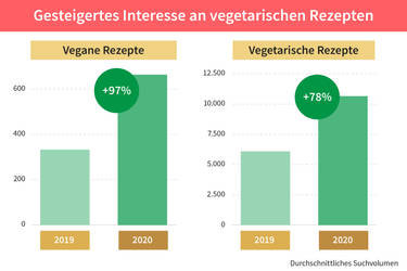 Vegetarische Proteine bleiben die erste Wahl in Deutschland. Das stimmt mit Daten von Google Trends überein, die zwischen 2019 und 2020 ein gesteigertes Interesse an vegetarischen Gerichten (+78 %) und veganen Gerichten (+97 %) aufzeigen.