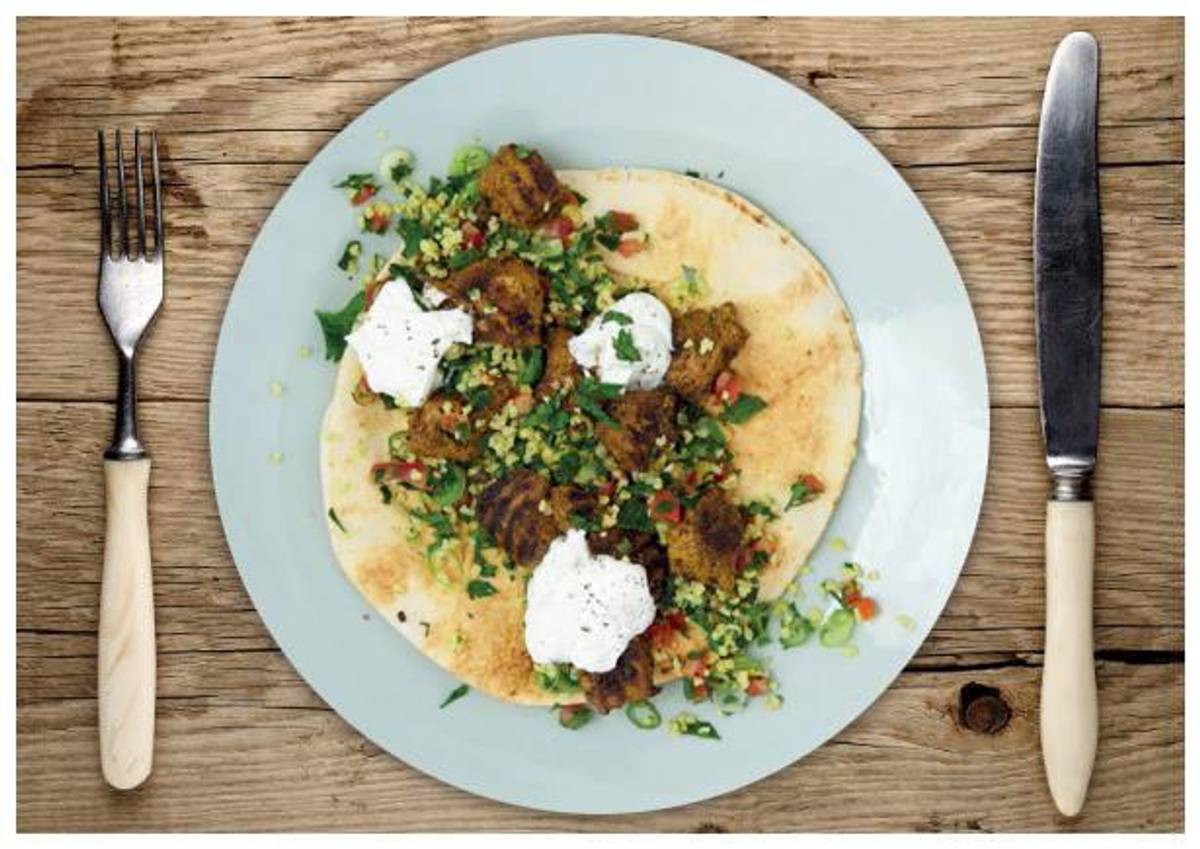 mit erfrischendem Bulgur-Petersiliensalat, Joghurtsoße und Fladenbrot