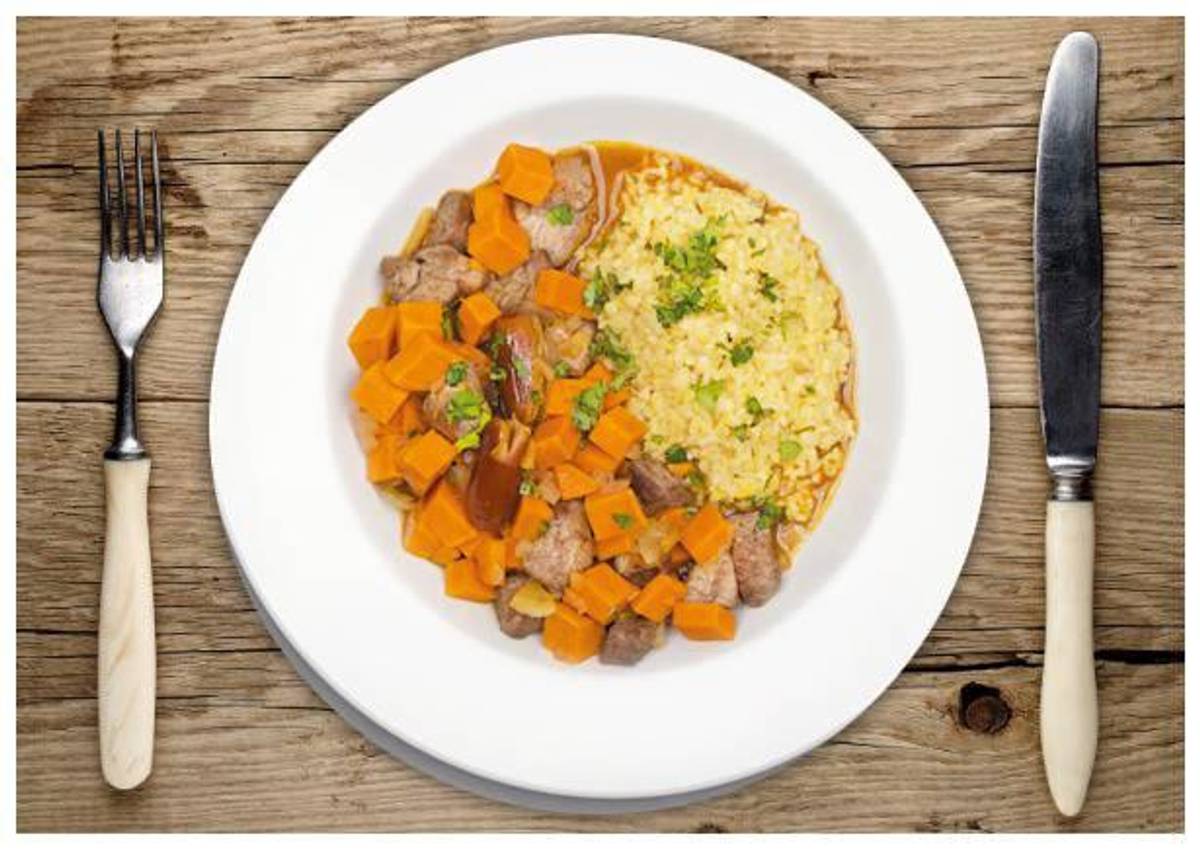 mit Süßkartoffeln und Datteln auf Bulgur