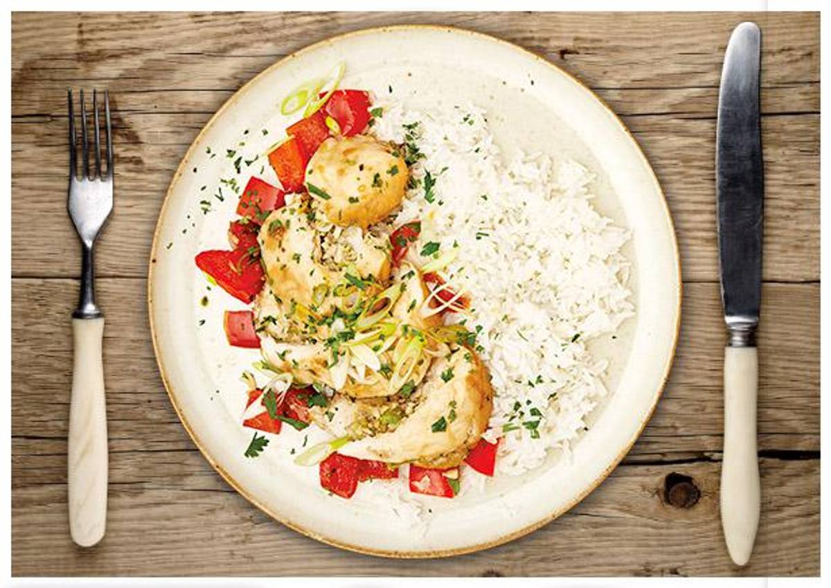 scharfem Chili-Limetten-Reis und Varoma-Gemüse
