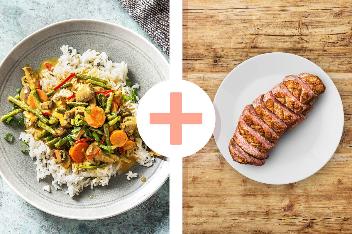 HelloExtra! Mit den extra Entenbrust zu unserem Gemüsecurry sorgen wir für gute Laune auf Deinem Teller! Cremige Schärfe ist sowieso das beste Hilfsmittel gegen triste Stimmung, darum schwing den Kochlöffel, genieße den exotischen Duft, wenn Du die feine Currypaste anbrätst und gib Deinem Curry mit Limettensaft das gewisse Etwas. Und dann lass Dir diesen Curry-Klassiker extra gut schmecken!