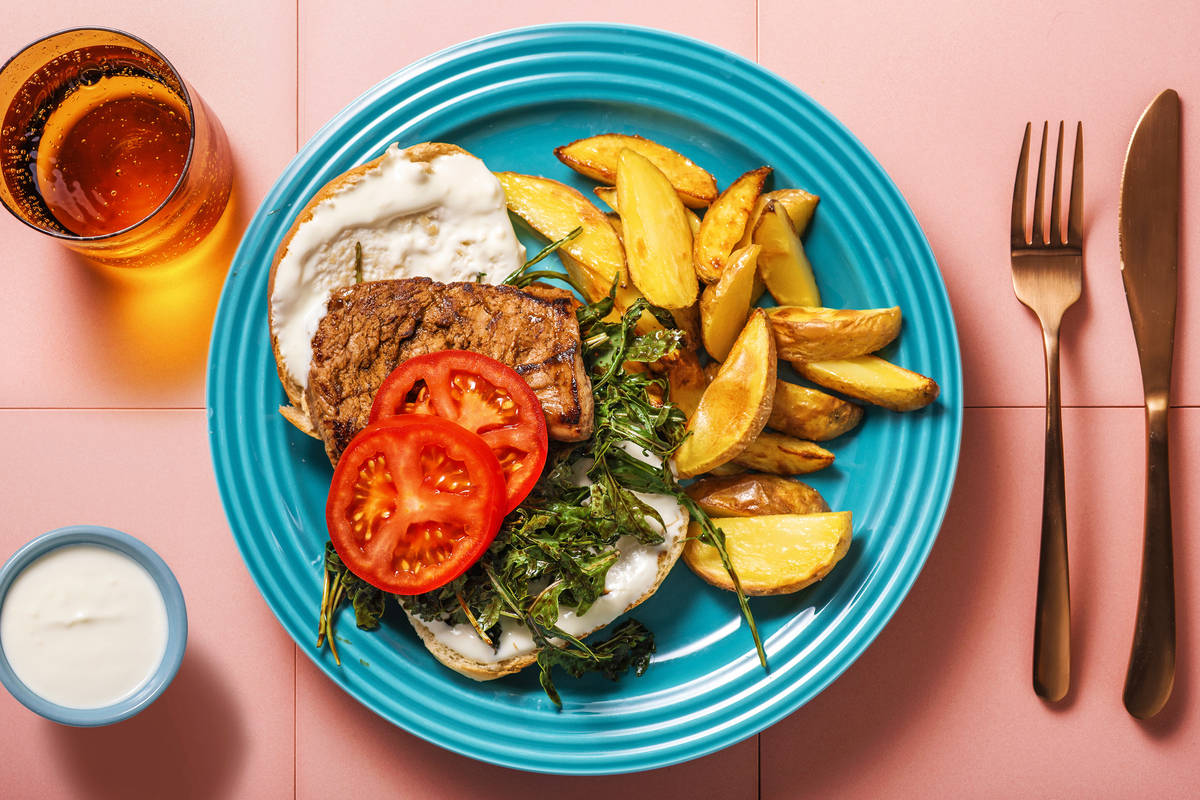 Schnell, schneller, Express! Mit unseren Express-Rezepten zauberst Du innerhalb kürzester Zeit ein ausgewogenes und vor allem leckeres Gericht auf den Tisch! In dieser Woche haben wir uns etwas ganz Besonderes einfallen lassen: Burger mit mariniertem Steak. Dazu gibt es leckere Kartoffelecken. Und für das Extra an Geschmack gibt es Aioli – lass es Dir schmecken!