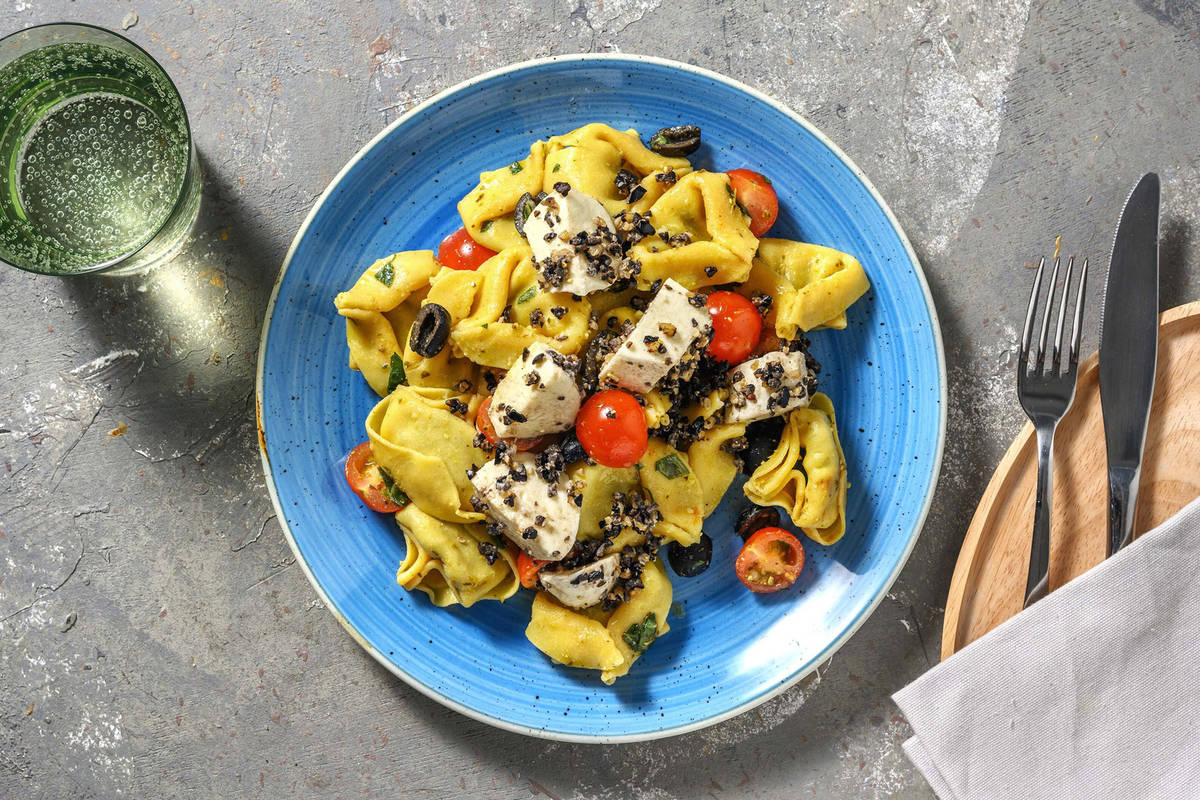 Frischer Tortellini-Salat getoppt mit Mozzarella