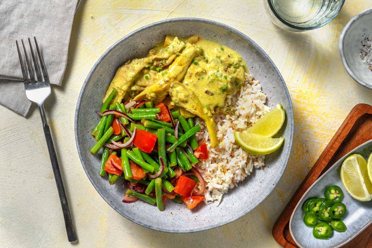 In der großen Pfanne 1 EL [1,5 EL | 2 EL] Öl* erhitzen und Zwiebel- Ingwer-Mix darin ca. 2 Min. anschwitzen. Austernpilze zugeben und weitere 2 – 3 anbraten. Hello Curry hinzufügen, gut vermengen und den Pfanneninhalt mit Kokosmilch und Gemüsebrühpulver ablöschen. Das ganze 2 – 3 Min. köcheln lassen, bis die Soße eingedickt ist. Mit Salz* und Pfeffer* abschmecken.
