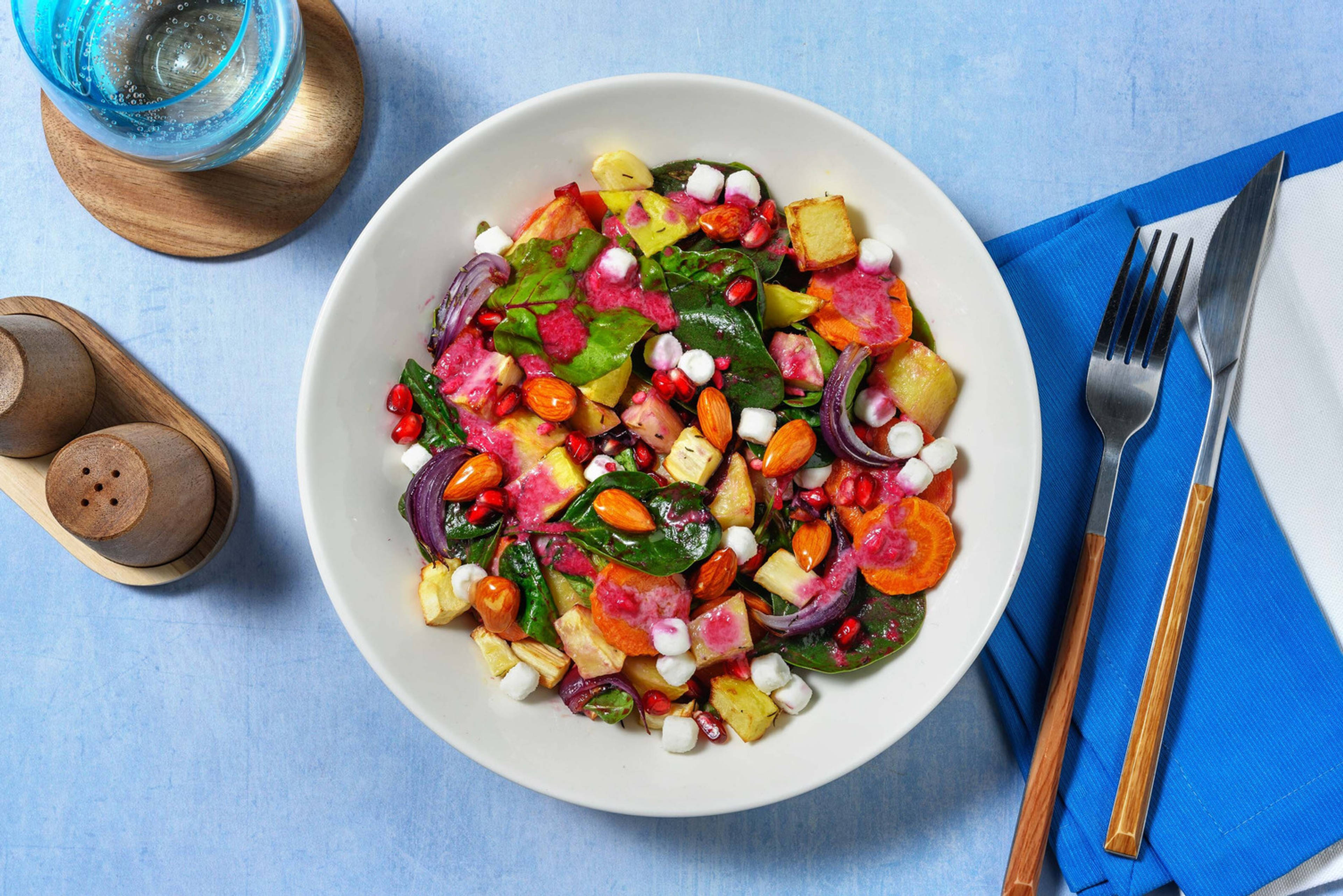 Mit restlichen Granatapfelkernen, Kiwischeiben und Mandelblättchen garnieren.