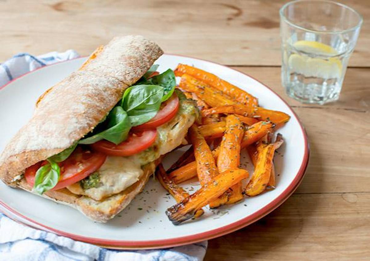 Hähnchen Ciabatta Burger mit Kürbiskernpesto-Mozzarella Haube
