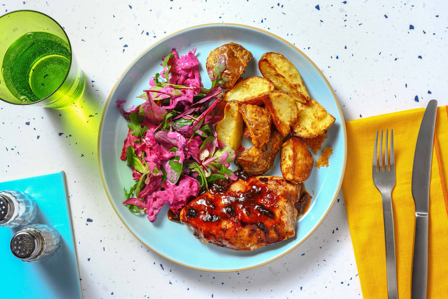 Heute wird es besonders proteinreich mit gleich doppelt Hähnchen. In Kombination mit frischem Coleslaw, Buffalosoße und knusprigen Pommes gibt das richtige Roadhouse-Vibes. Yeehaw!