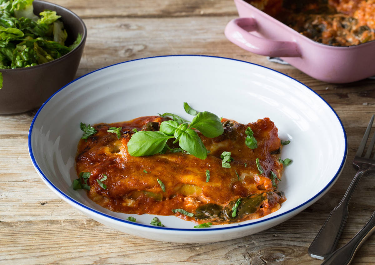 Italienischen Pasta-Auflauf aus dem Ofen nehmen und 2–3 Min. ruhen lassen, dann auf tiefen Teller verteilen und mit restlichem Basilikum bestreuen. Salat dazu anrichten und zusammen genießen!