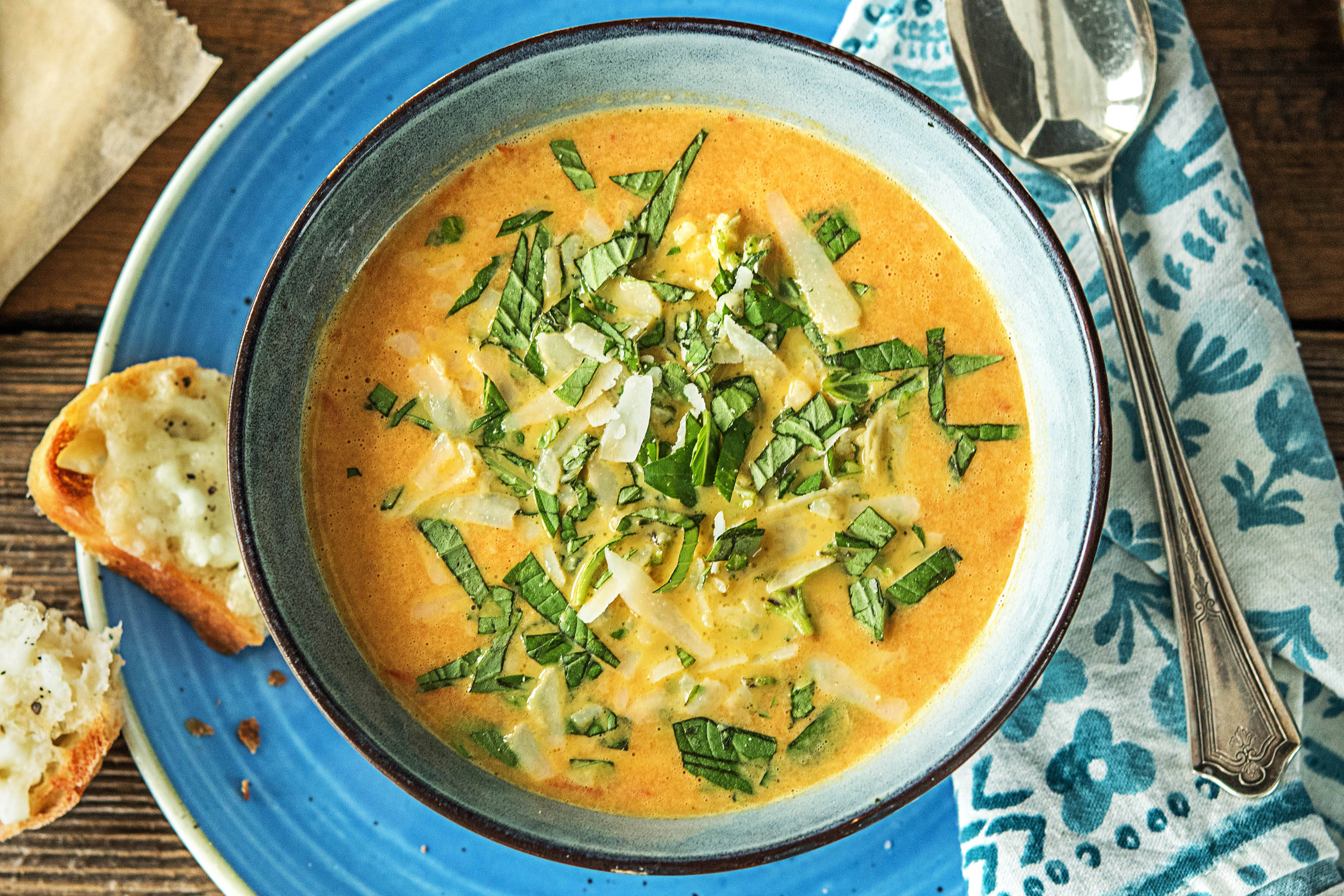 Du kannst Käse Suppen und anderen pikanten Gerichten hinzufügen. Alternativ verwendest Du ihn für gegrillte Sandwiches oder überbackenen Bolognese-Auflauf.