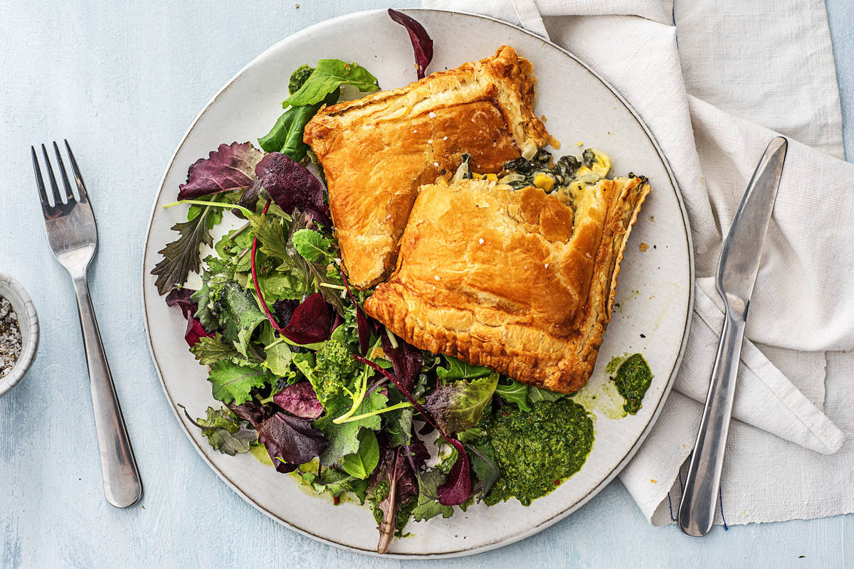 Rezeptentwickler Marco über seine knusprigen Spinat-Mais-Taschen: "Ich habe Kollegin Julia, die südamerikanische Wurzeln hat, gefragt, was ihre Lieblingsfüllung für eine Empanada ist. Diese wurde dann ‚eingedeutscht‘ zu einem Strudel. Zu der ursprünglichen Empanada-Idee hatten wir aber schon dieses herrlich frische Chimichurri-Dressing entwickelt, das perfekt harmoniert und nicht mehr fehlen darf." Da bleibt uns nur zu sagen: Guten Appetit!