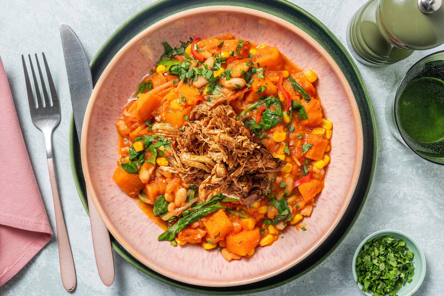 Pulled Pork. Schweinefleisch flüssig und trocken gewürzt, zart gegart, vakuumverpackt. Zutaten: 98% Schweinefleisch flüssig gewürzt (85% Schweinefleisch*, 13% Flüssigwürzung (Trinkwasser, Reisstärke, Rauchsalz (Speisesalz, Buchenholzrauch), Maltodextrin, Speisesalz, Säureregulator: Natriumcarbonate; Stabilisator: Diphosphate; Gewürzextrakte)), 2% Würzung (Tomatenpulver, Speisesalz, Gewürze, Zucker, Gewürzextrakte, Buchenholzrauch). *QS-Ware DE EV 42 EG Lagerung: Gekühlt bei Herkunft: EU, überwiegend Deutschland, Niederlande, Belgien. Inverkehrbringer: HelloFresh Deutschland SE & Co. KG | Prinzenstraße 89 | 10969 Berlin | Deutschland | www.hellofresh.de