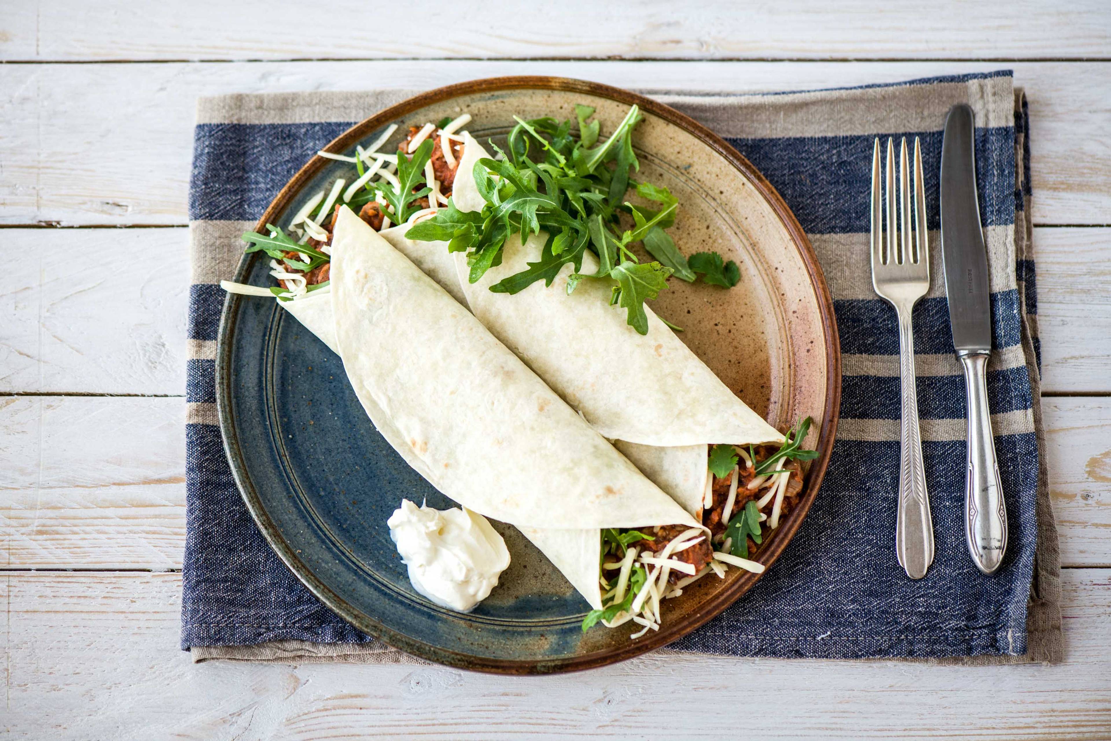 Wenn eine Tortilla gefaltet und mit Käse gefüllt ist, wird sie zur Quesadilla. Vorher wird sie allerdings noch in Öl gebraten oder frittiert.