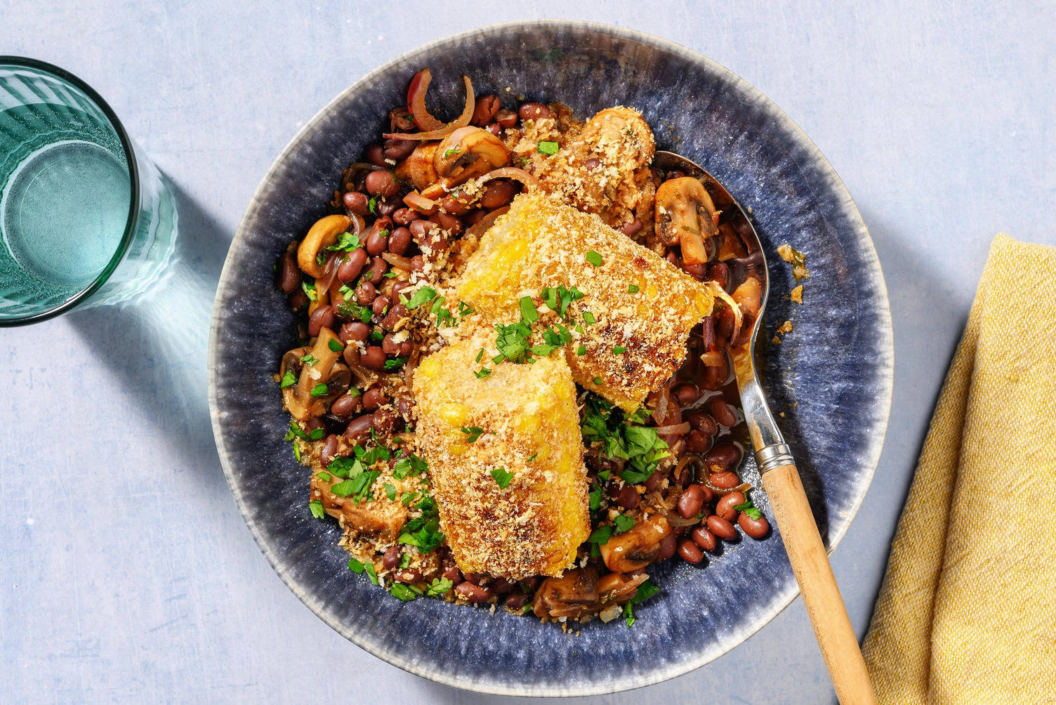Auberginenscheiben auf ein mit Backpapier belegtes Backblech legen, mit 1 EL [1,5 EL | 2 EL] Öl*, Salz* und Pfeffer* vermengen und 15 – 20 Min. backen, bis sie weich sind.