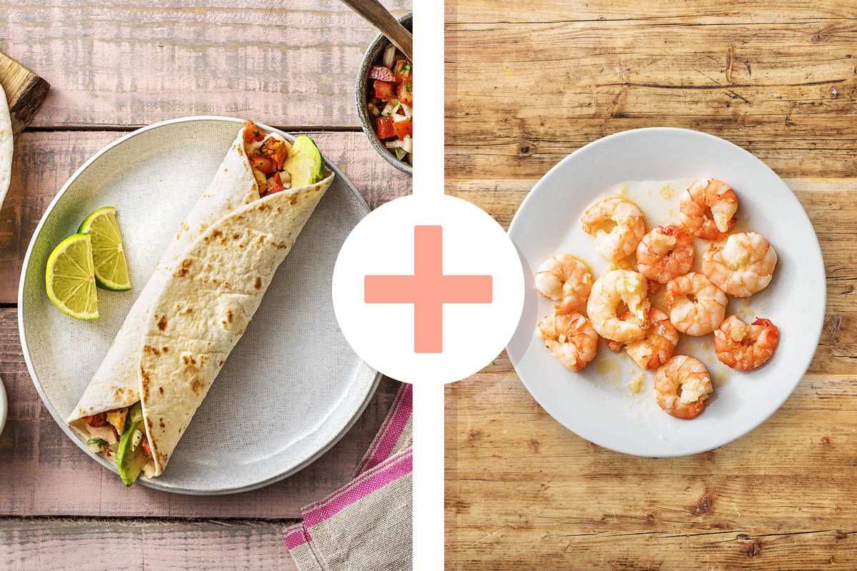 Hello Extra! Deine rauchigen Süßkartoffel-Hirtenkäse-Tacos erfahren heute ein Upgrade durch zarte und leckere Garnelen. Die **ballaststoffreichen** Tacos eignen sich übrigens ganz wunderbar dazu, mitgenommen und später gegessen zu werden! Du kannst die Süßkartoffel-Hirtenkäse-Füllung und die Salsa zum Beispiel am Vortag zubereiten, so zieht alles schön durch. Wir wünschen Dir einen extra guten Appetit!