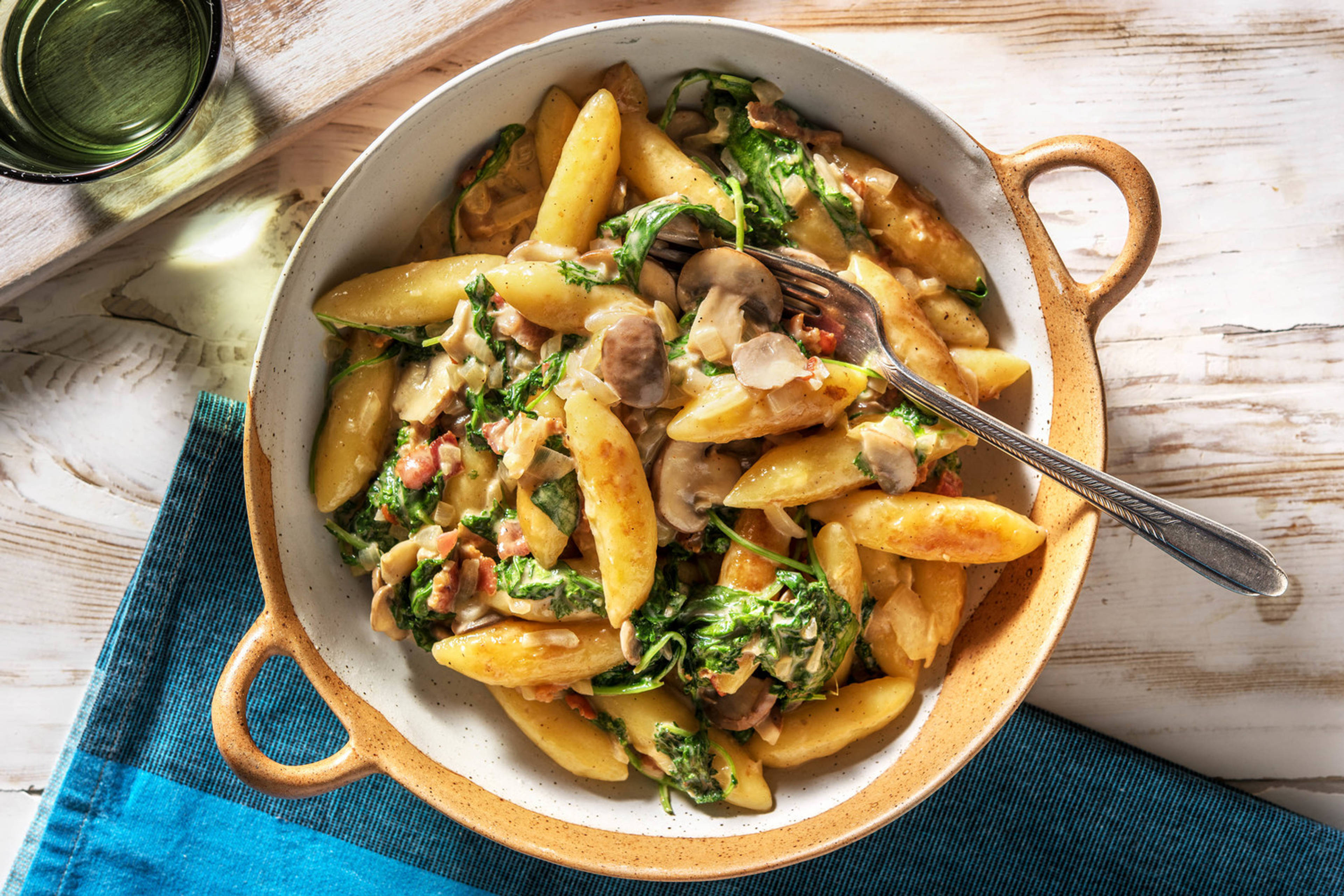 In derselben Pfanne Bacon ohne weitere Fettzugabe bei mittlerer Hitze ca. 5 Min. unter gelegentlichem Wenden knusprig anbraten. Inzwischen Kürbiskerne, Walnüsse und Haselnüsse grob hacken. Focaccia in 2 cm breite Scheiben schneiden.