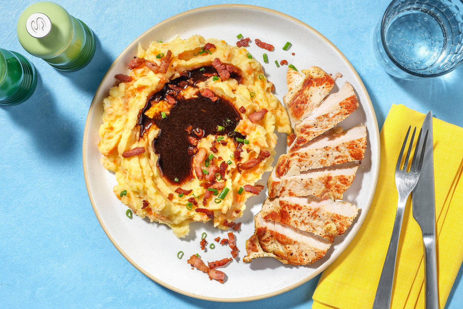 In einer großen Pfanne 1 EL [1,5 EL | 2 EL] Öl* auf mittlerer Temperatur erhitzen. Hähnchenbrustfilets 5 – 8 Min. pro Seite braten, bis das Fleisch innen nicht mehr rosa ist.