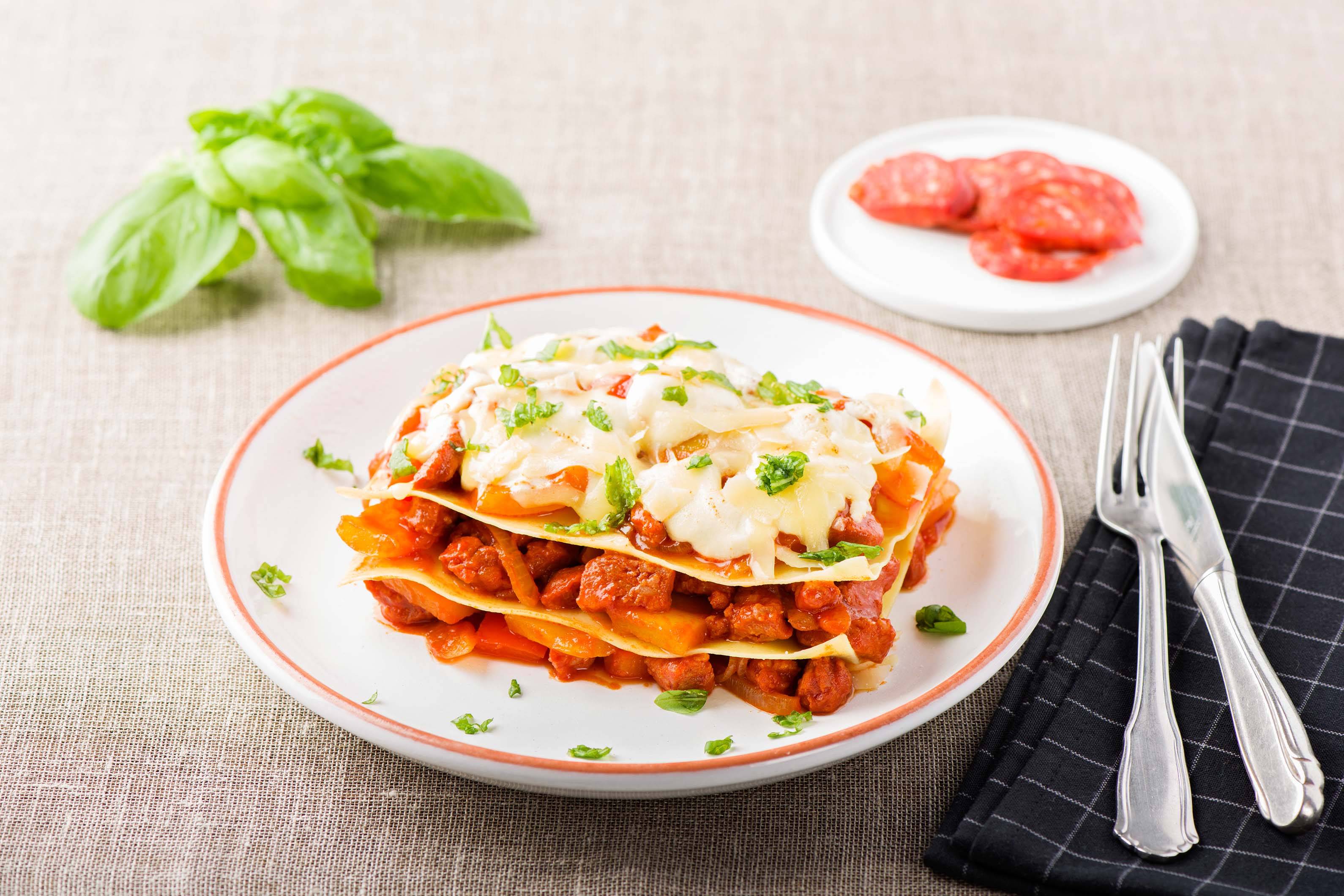Chorizo in 1 cm Würfel schneiden.