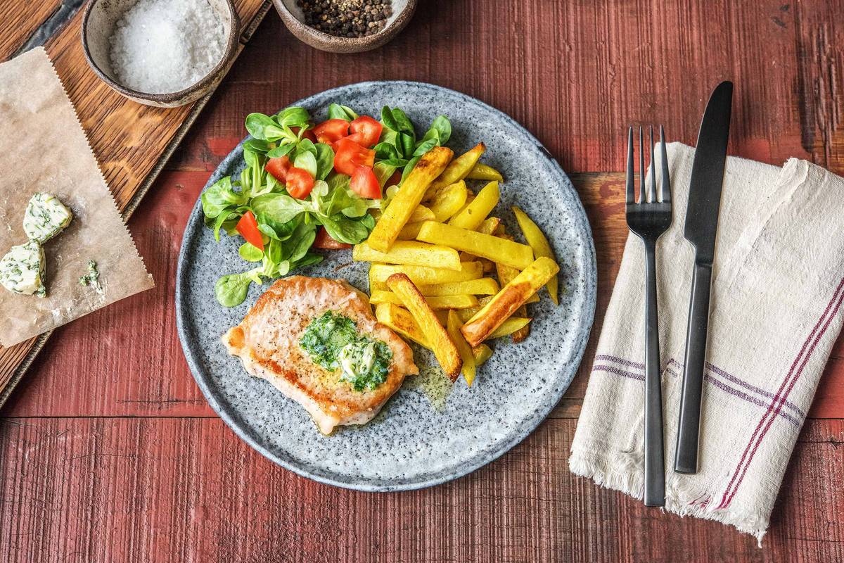 Diesen kulinarischen Gruß aus der französischen Küche darfst Du Dir nicht entgehen lassen! Es gibt saftiges Schweinesteak mit knusprigen Pommes und einem knackigen Gartensalat! Abgerundet wird dieses Geschmackserlebnis mit selbstgemachter Estragonbutter! Lass Dir unser leckeres Thermomix-Rezept schmecken!