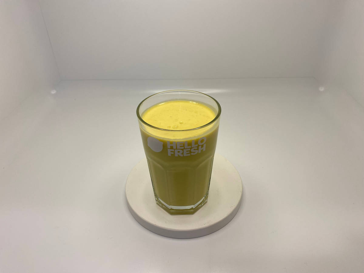 Smoothie mithilfe eines Pürierstabs 2 Min. pürieren. Mit Zucker* abschmecken.