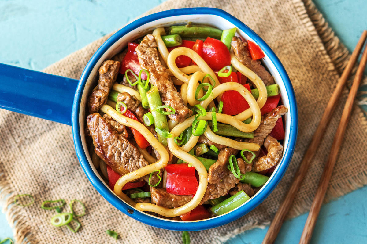 Wieso nicht einfach das Beste aus zwei asiatischen Küchen miteinander verbinden? Darum findest Du in diesem Rezept die beliebten Udon-Nudeln aus Japan in einer vietnamesischen Interpretation. Mit dabei sind jede Menge Gemüse, Rinderkeulenstreifen und etwas feuriger Chili. Und für den typischen Geschmack dürfen Sojasoße, Knoblauch und Zitronengras natürlich nicht fehlen. Stell Dich auf ein Aromen-Feuerwerk ein!