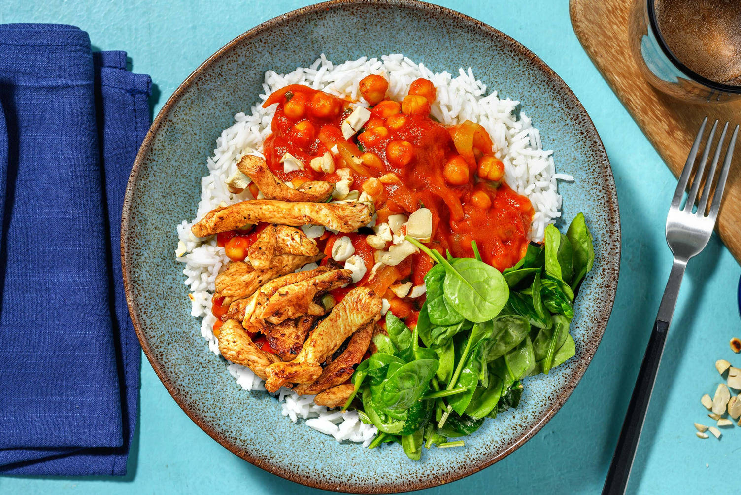Kichererbsen, Linsen und „Hello Mezze“ zugeben und eine Minute weiterbraten.